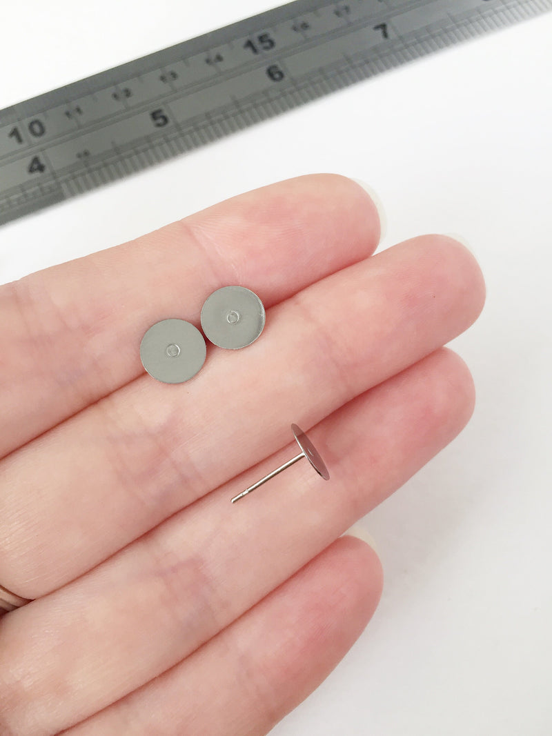 20 pairs x Stainless Steel Flat Pad Earring Studs, 8x12mm (0743)