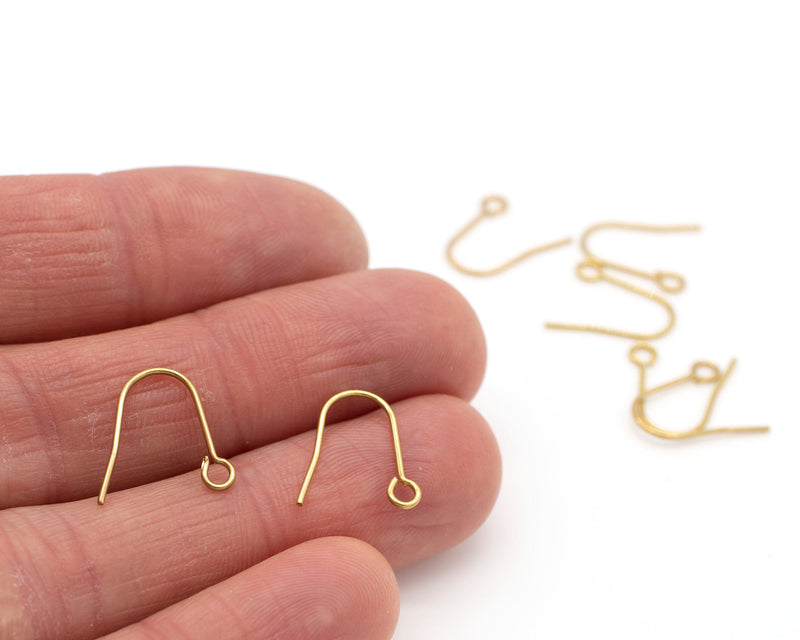 10 pairs x Plain Raw Brass Ear Wire, 14mm Brass Earring Hooks (C0635)