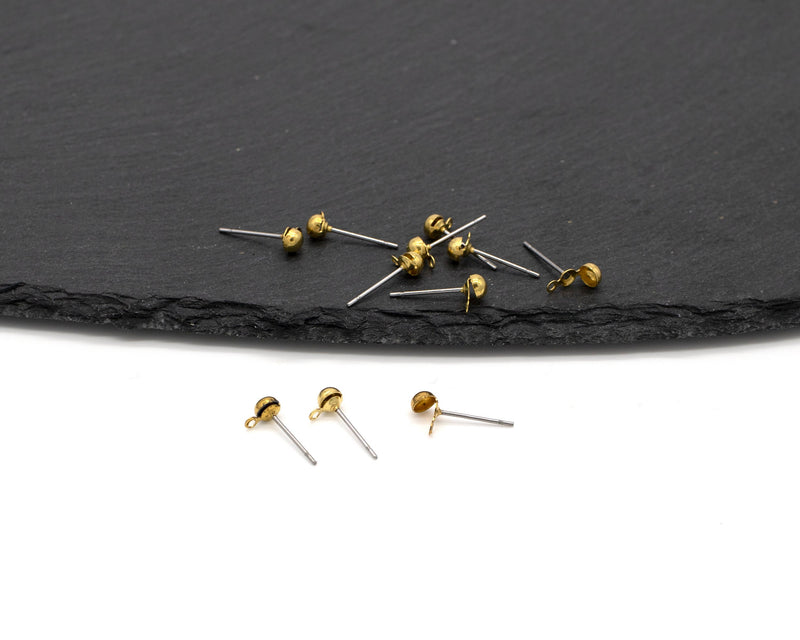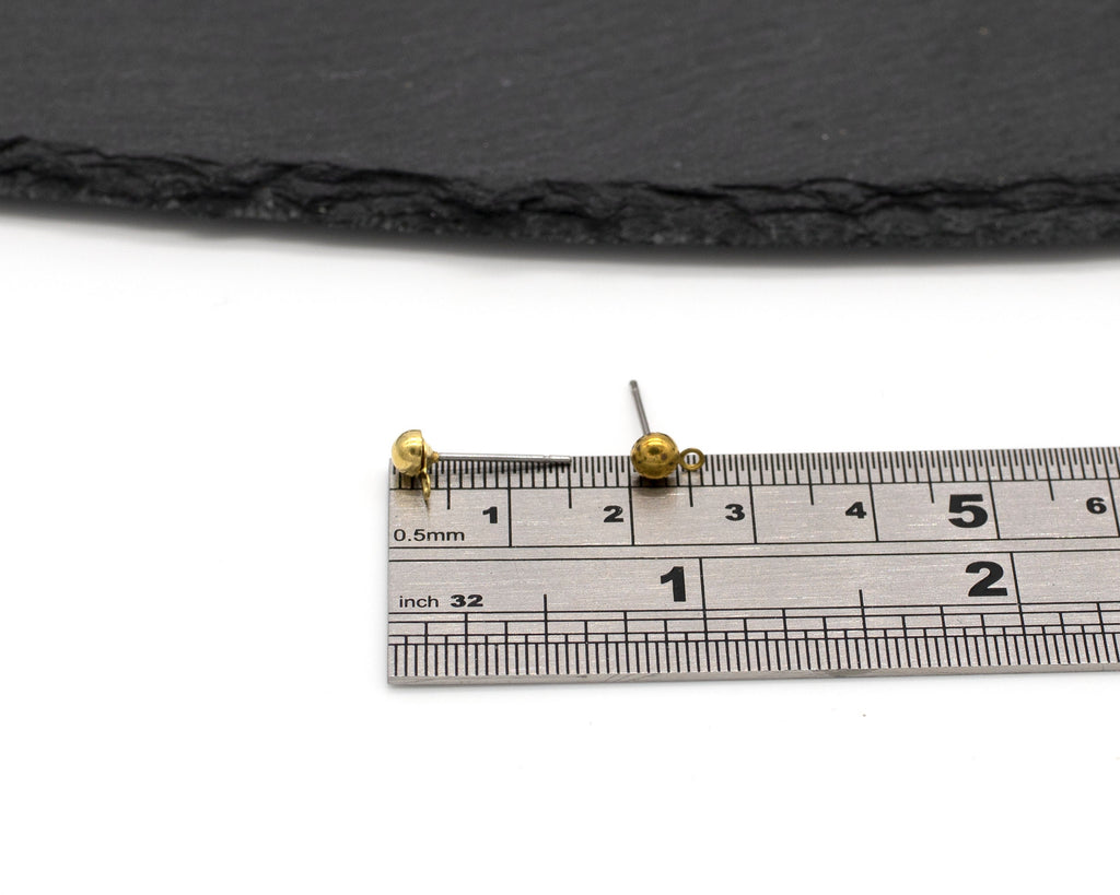 10 pairs x Raw Brass Ball Stud Earring Posts with Loop (C0379)