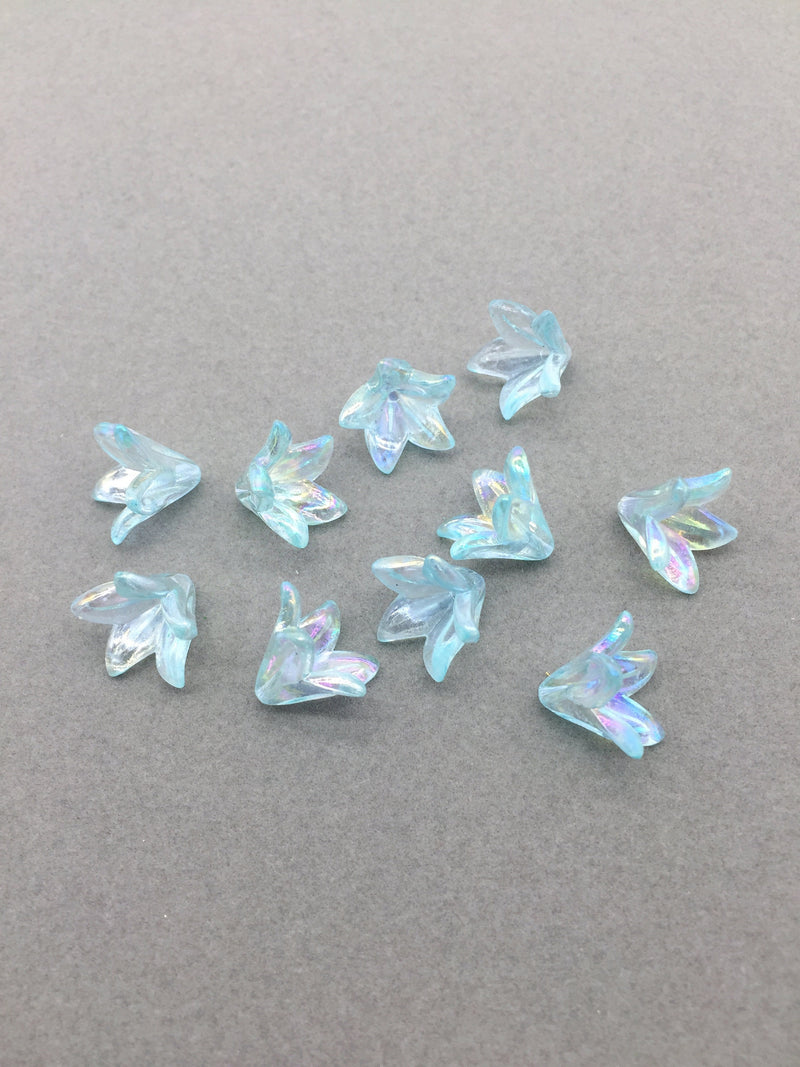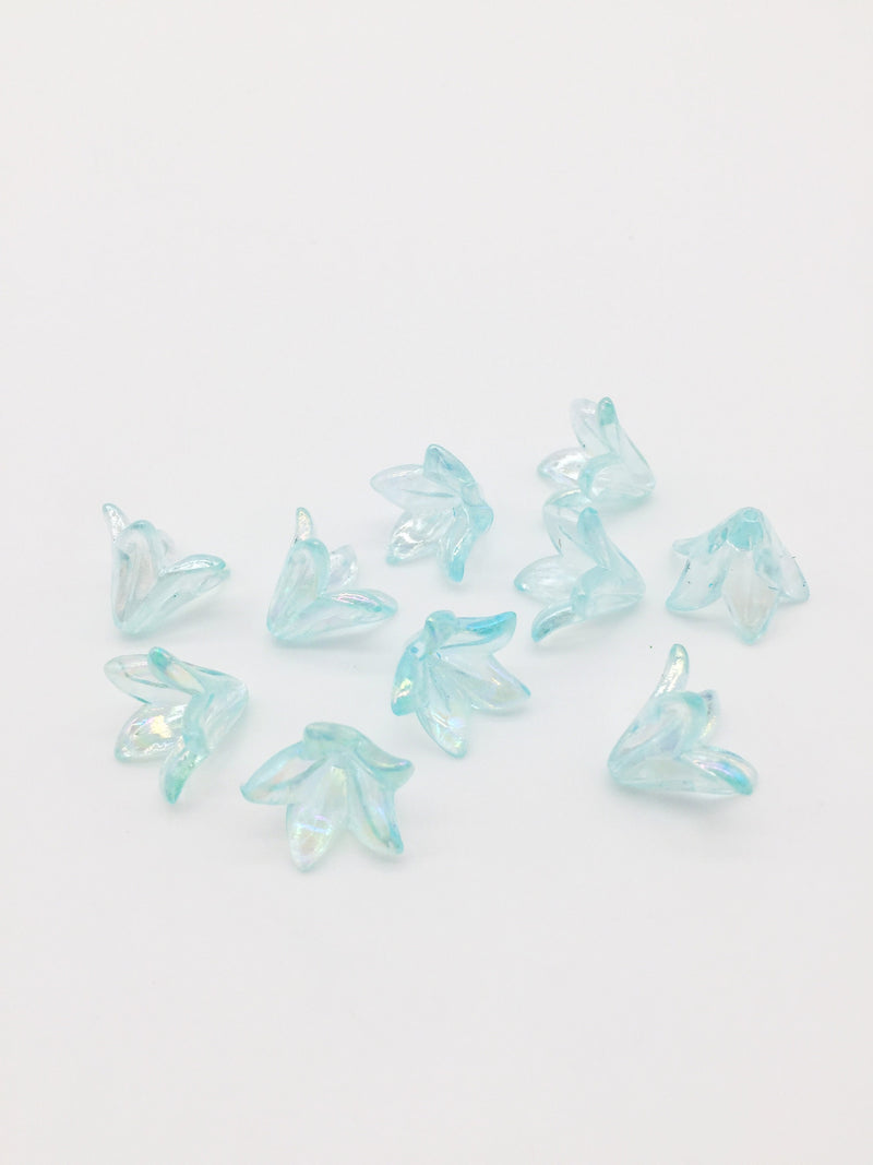 ✨ Acrylic flower beads, transparent pale turquoise colour with aurora borealis plating