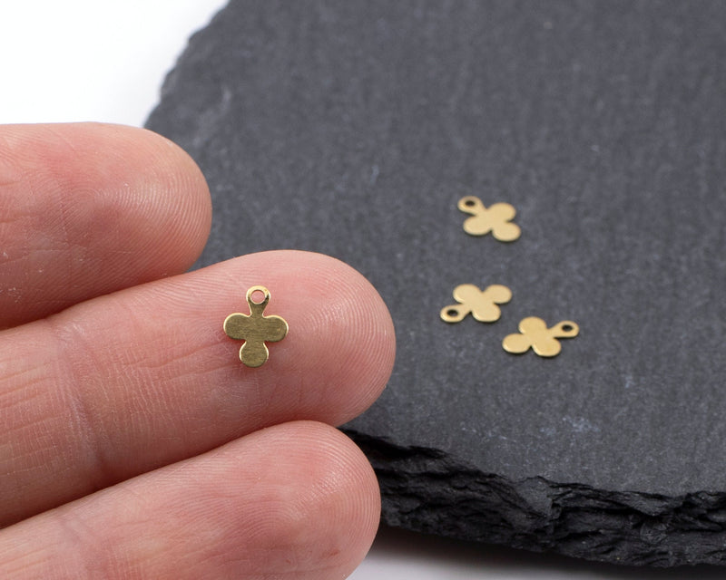 20 x Raw Brass Tiny Clover Leaf/Clubs Charms, 7x5mm (C0543)