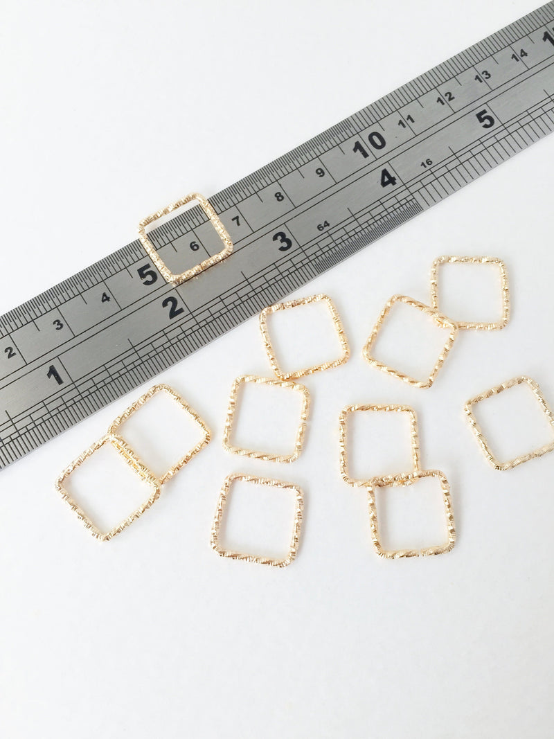 10 x Textured Champagne Gold Square Connectors, 15mm (0773)