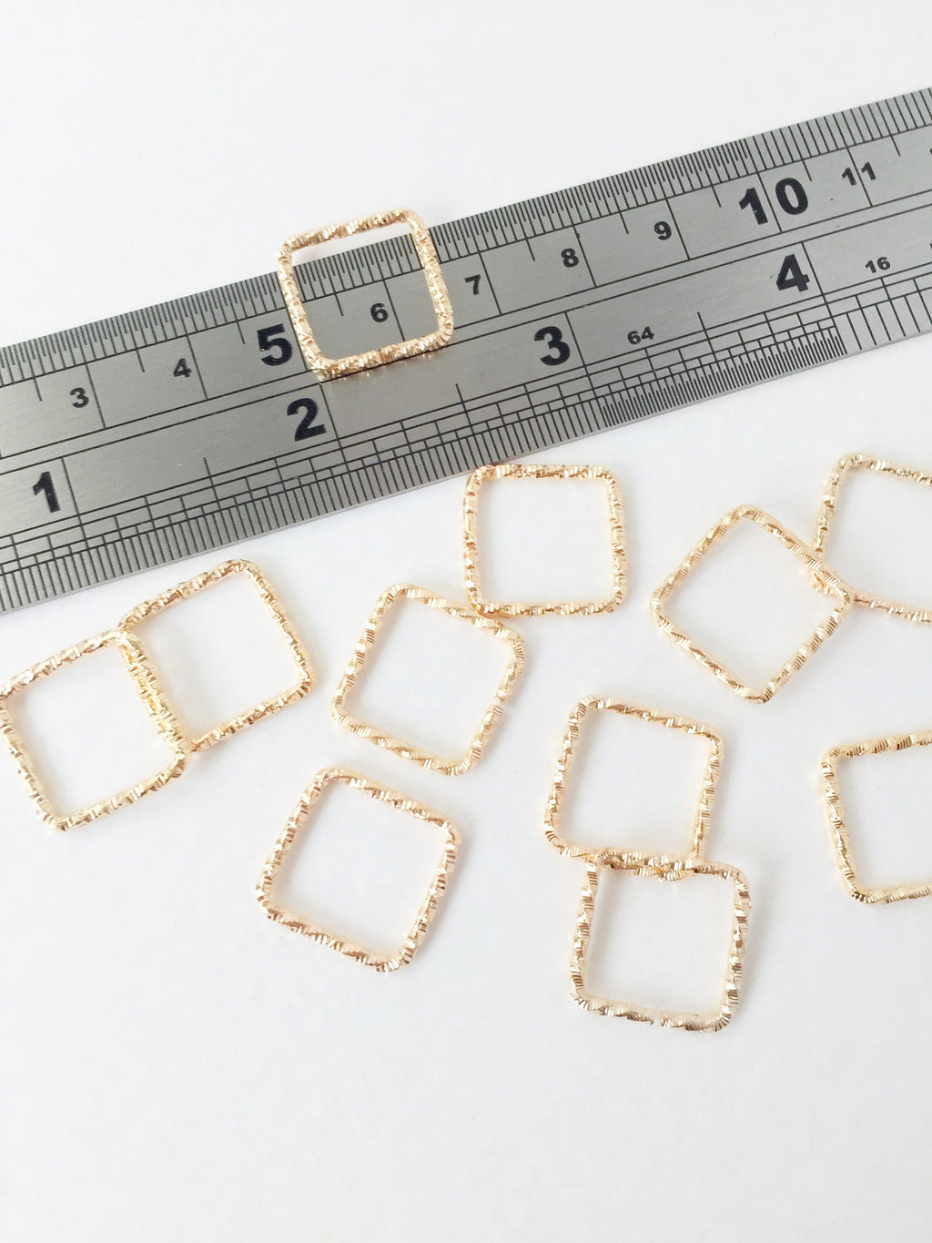 ✨ Champagne gold tone textured square connectors, with opening at one side