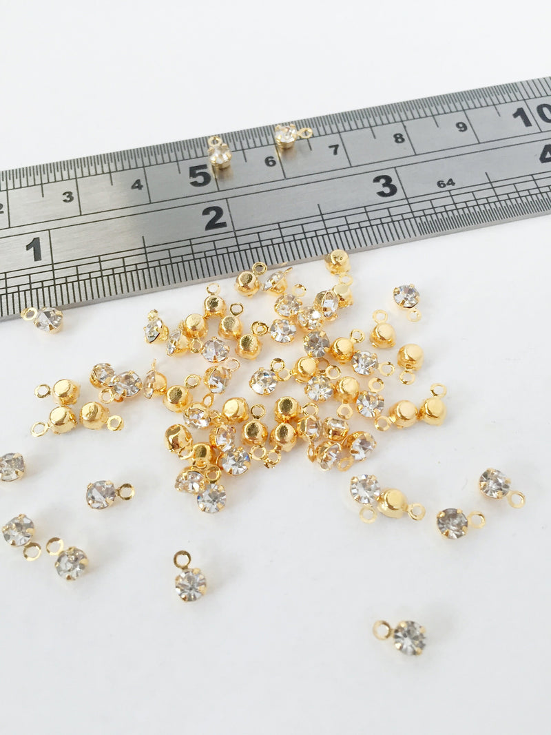 20 x Tiny 18K Gold Plated Crystal Charms, 3x5mm (1045)