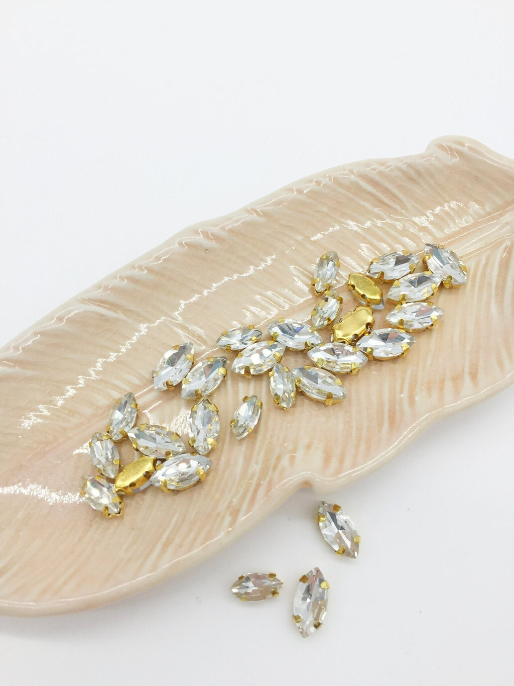 24 x 4x8mm Gold Navette Glass Rhinestones with Sew-on Base (2787)
