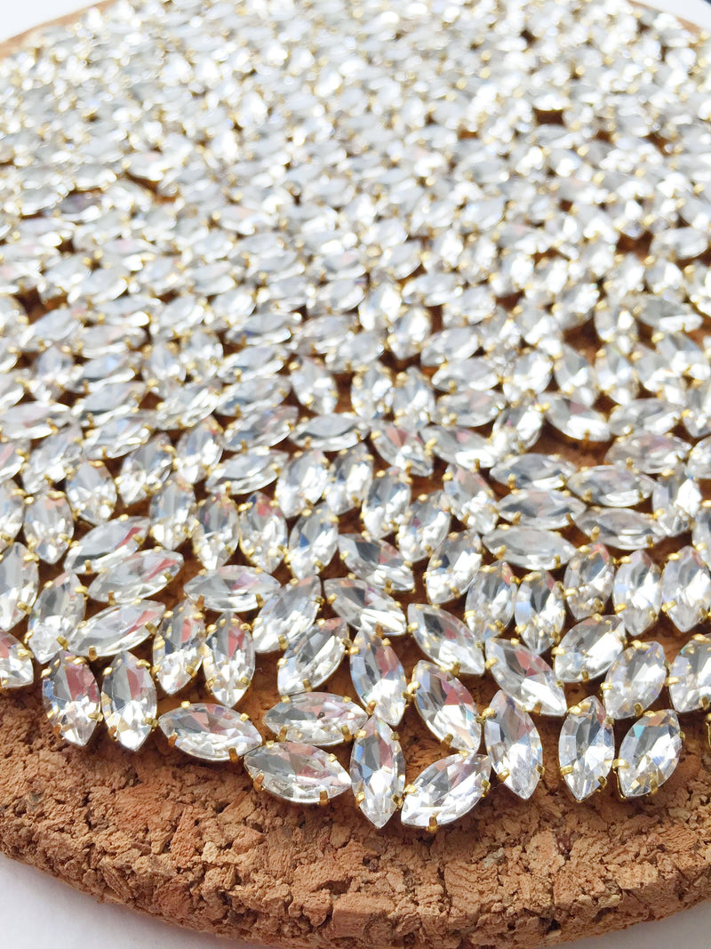 24 x Clear Glass Navette Rhinestones in Gold Sew-on Setting, 5x10mm/6x12mm/7x15mm (2788)
