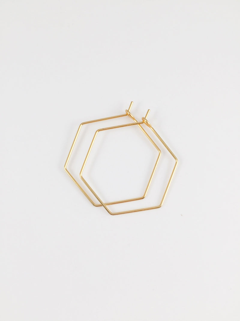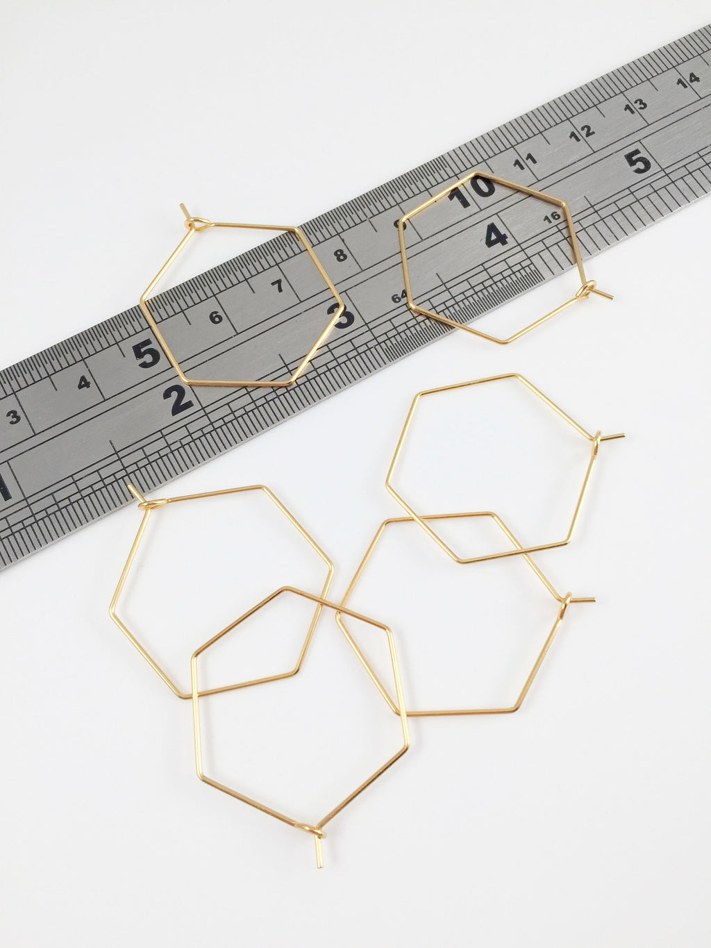 1 pair x Gold Stainless Steel Hexagon Earring Wire, 25x28mm Beadable Earring Hoops (2333)