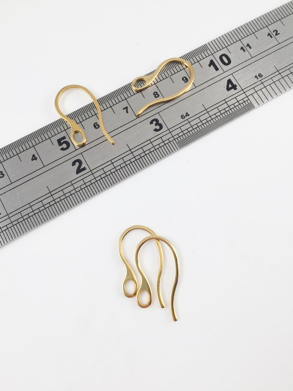 1 pair x Gold Plated Stainless Steel Flattened Earring Hooks (0114)
