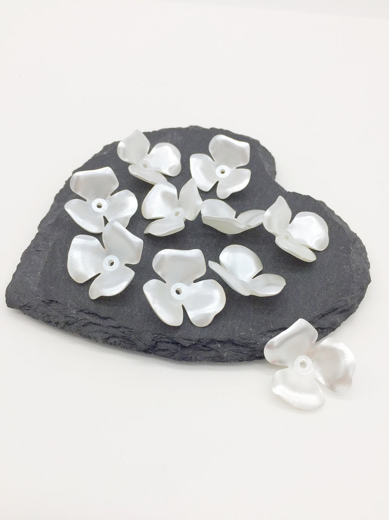 30 x Pearl White Acrylic Flower Beads, 22mm (1795)