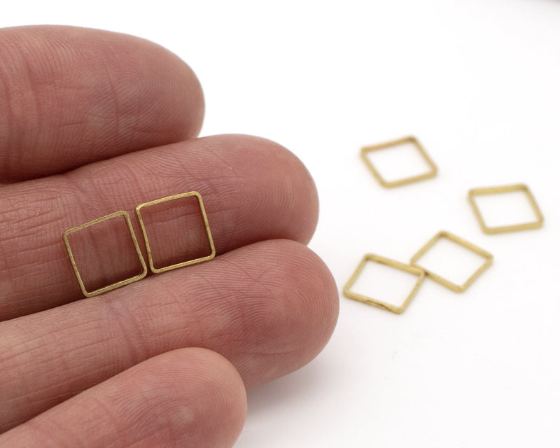30 x Raw Brass Square Connectors, 8mm Square Open Bezel Linking Rings (C0662)