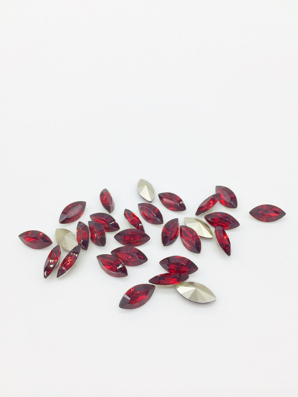 36 x Red Crystal Navette Rhinestone Foiled Back Rhinestone Marquise Cut, 6x12mm (2255)