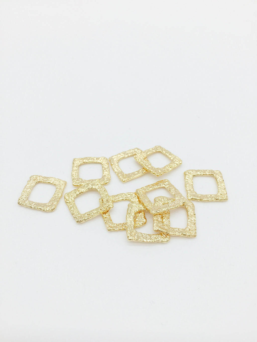 2 x 18K Gold Plated Textured Square Connectors, 14mm (1558)