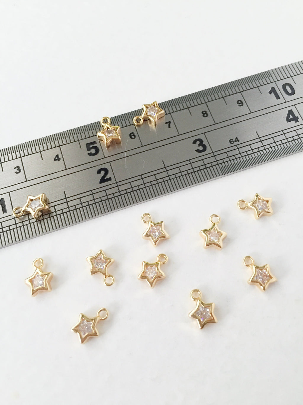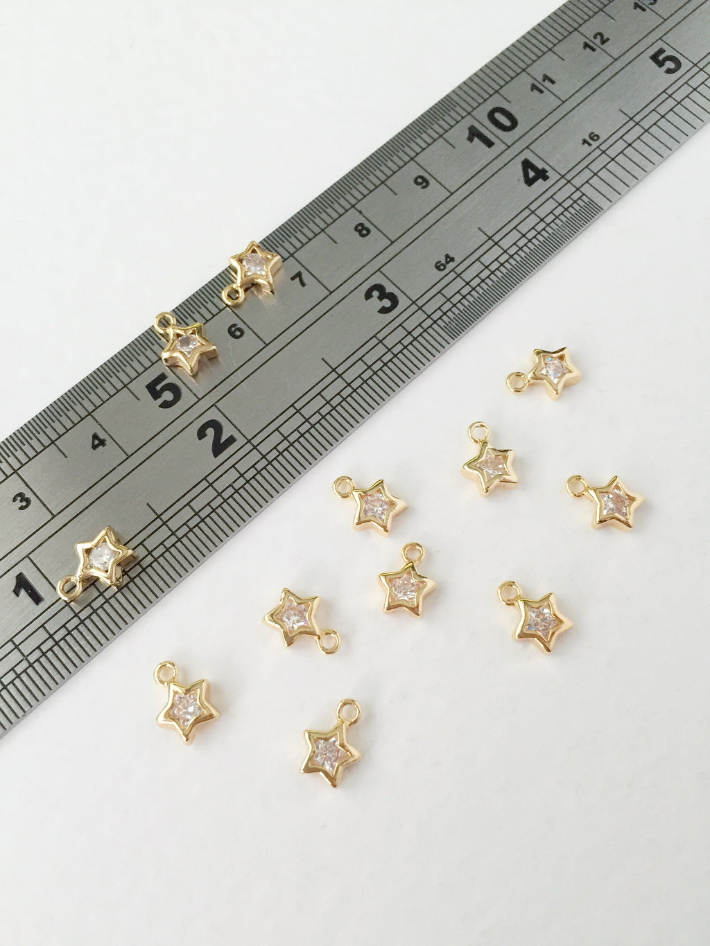 ✨ Tiny brass star charms with cubic zirconia centre, plated in 18K gold