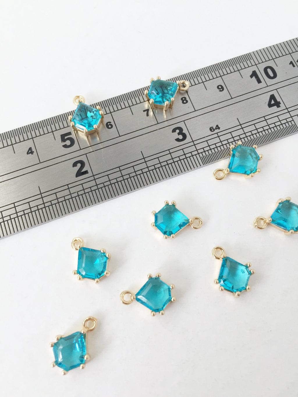 2 x 24K Gold Plated Sky Blue Glass Charms, 12x8.5mm Gold Crystal Pendants (1145)