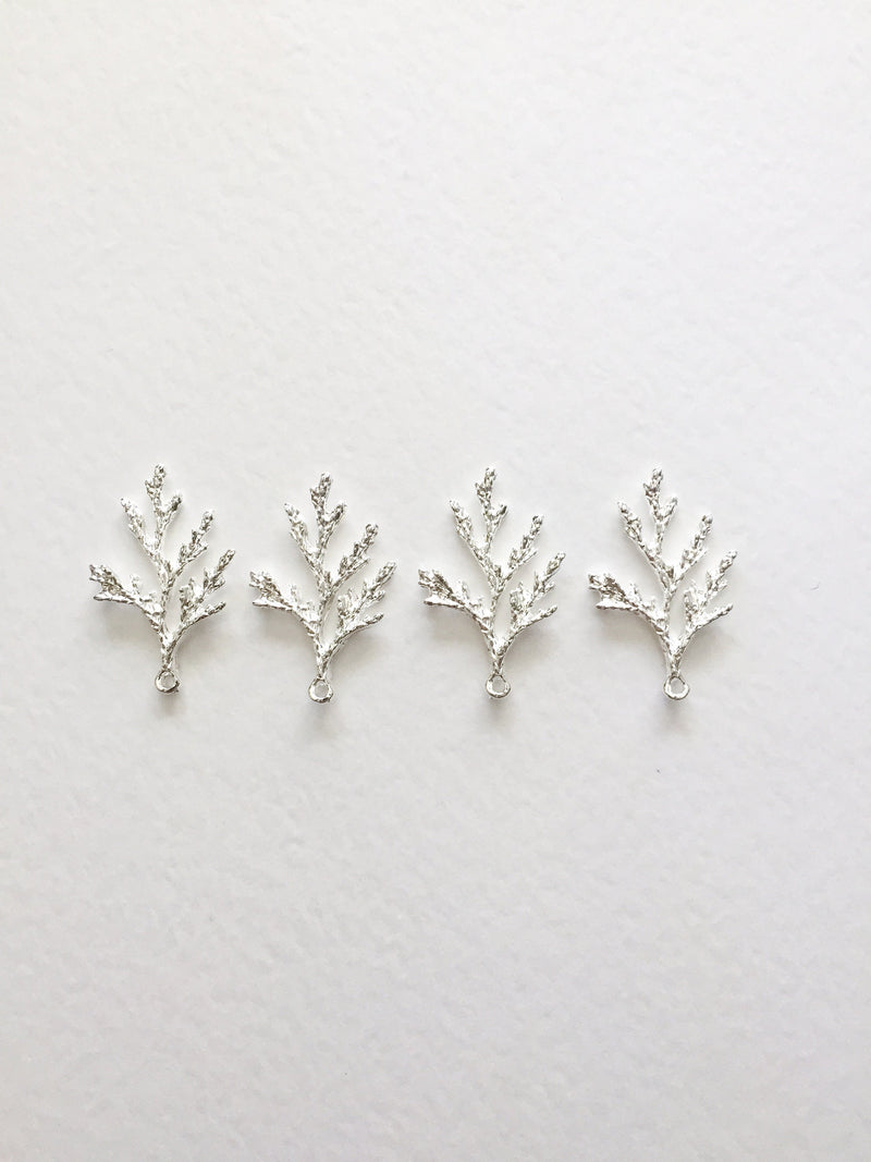 4 x Bright Silver Plated Thuja Branch Charms, 36x28mm (3531)