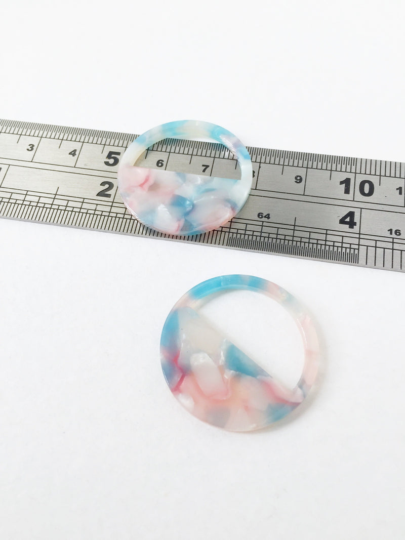 2 x Blue and Pink Tortoiseshell Cut Out Circle Pendants, 30mm (1553)