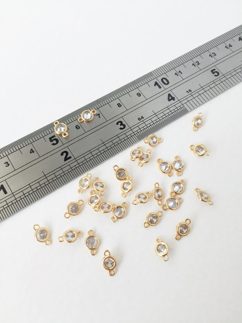 2 x 24K Gold Plated Round Cubic Zirconia Connectors, 9x5mm (1429)