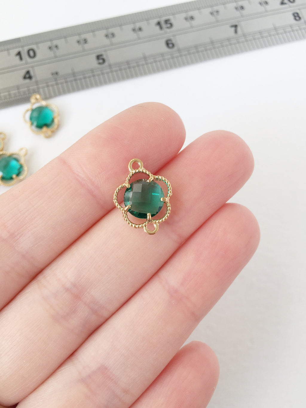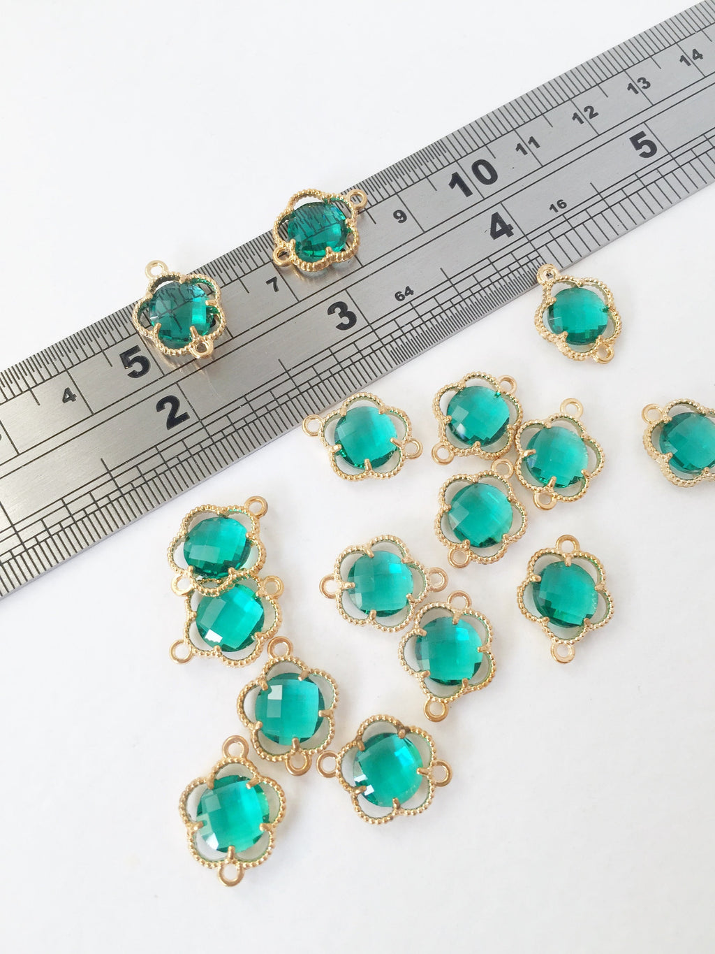 2 x Gold Plated Emerald Green Faceted Glass Flower Connectors, 16x12mm (1056)
