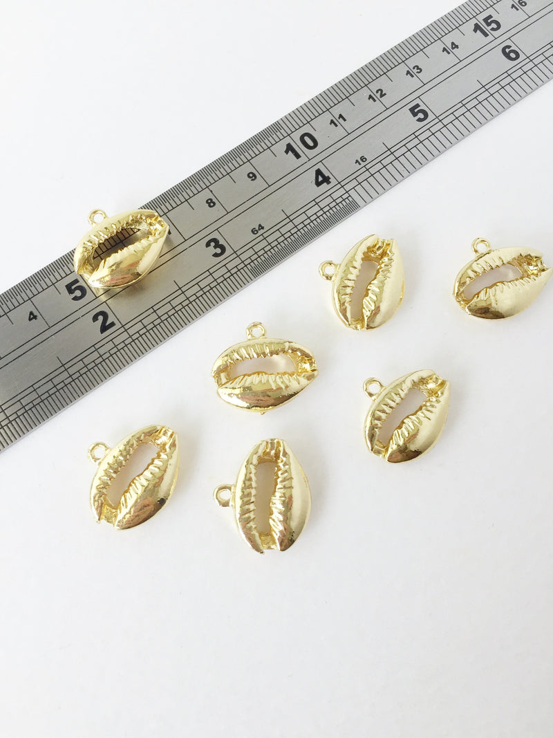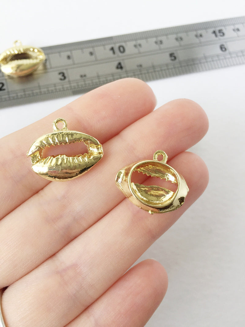 4 x Gold Plated Cowrie Shell Charms, 15x17mm (1700)