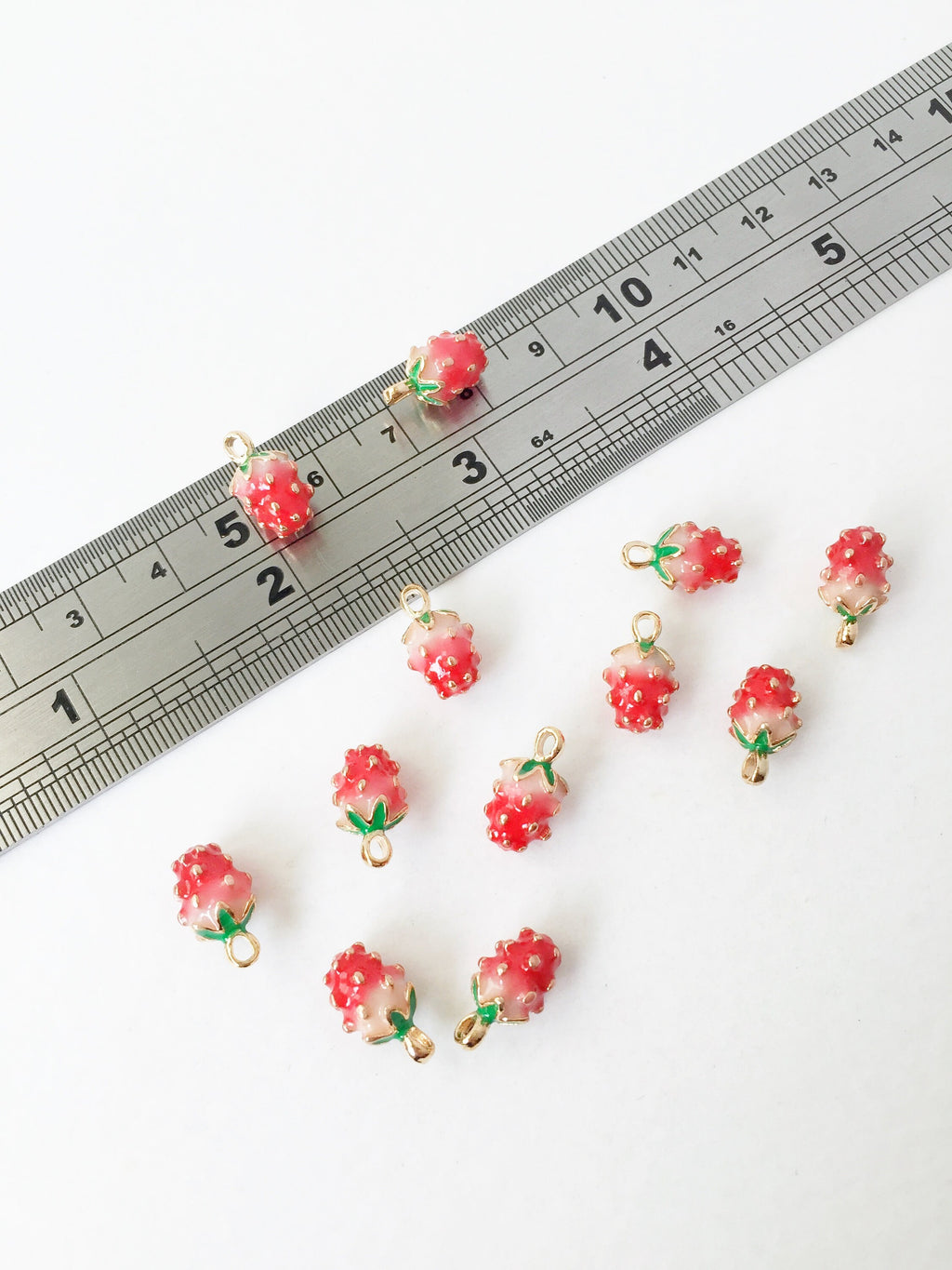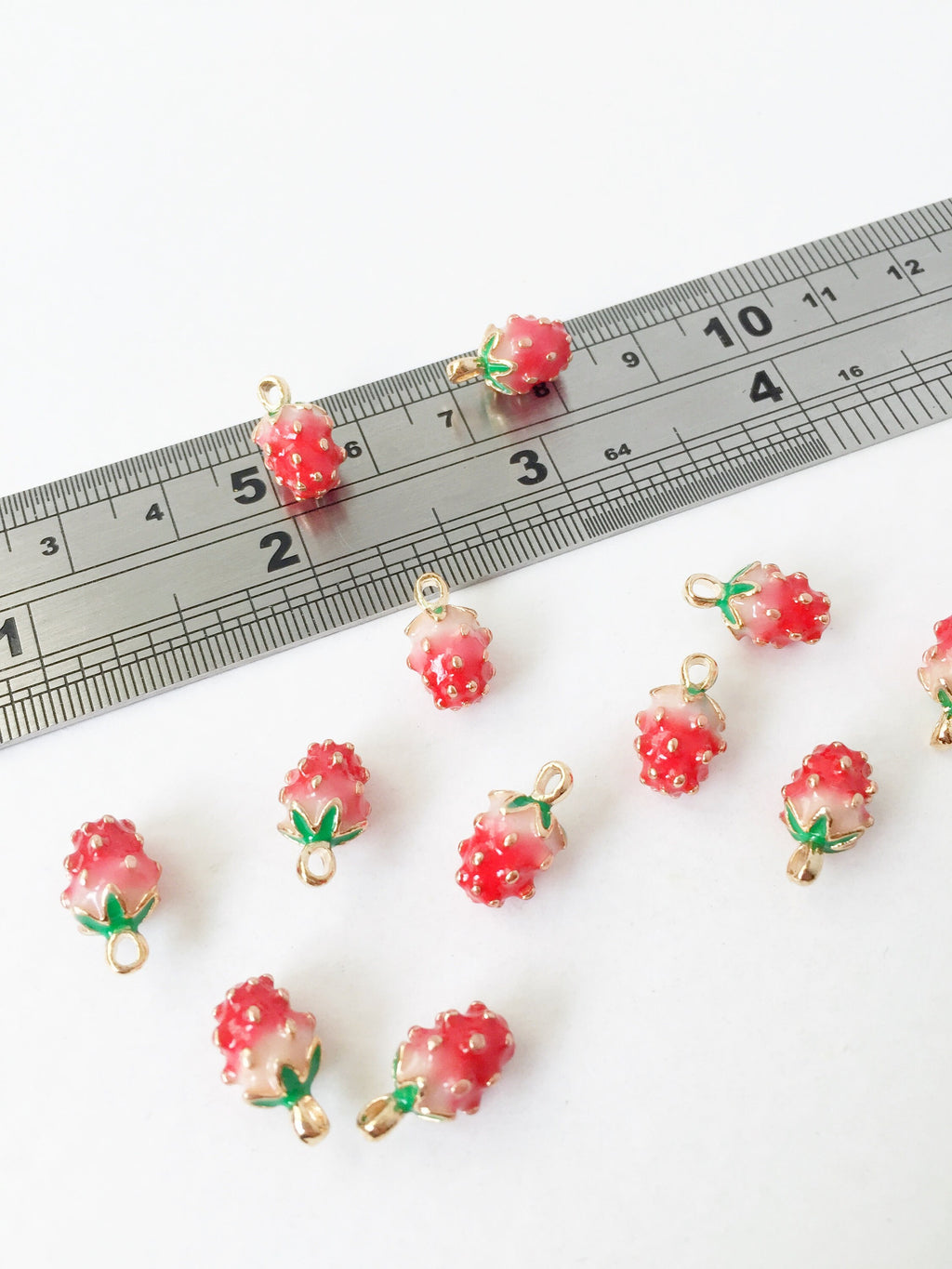 ✨ Gold plated enamelled strawberry charms