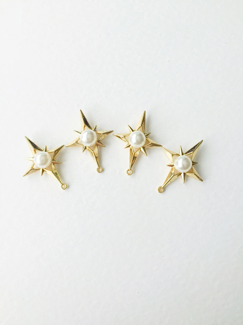 4 x Gold Star Pendants with Pearl, 32x24mm