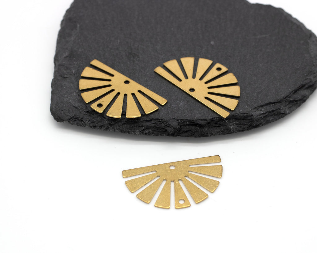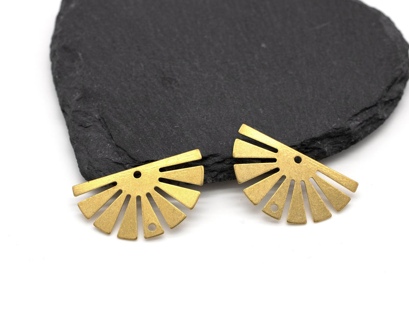 2 x Large Smooth Brass Fan Shape Connectors, 35x20mm (C0073)