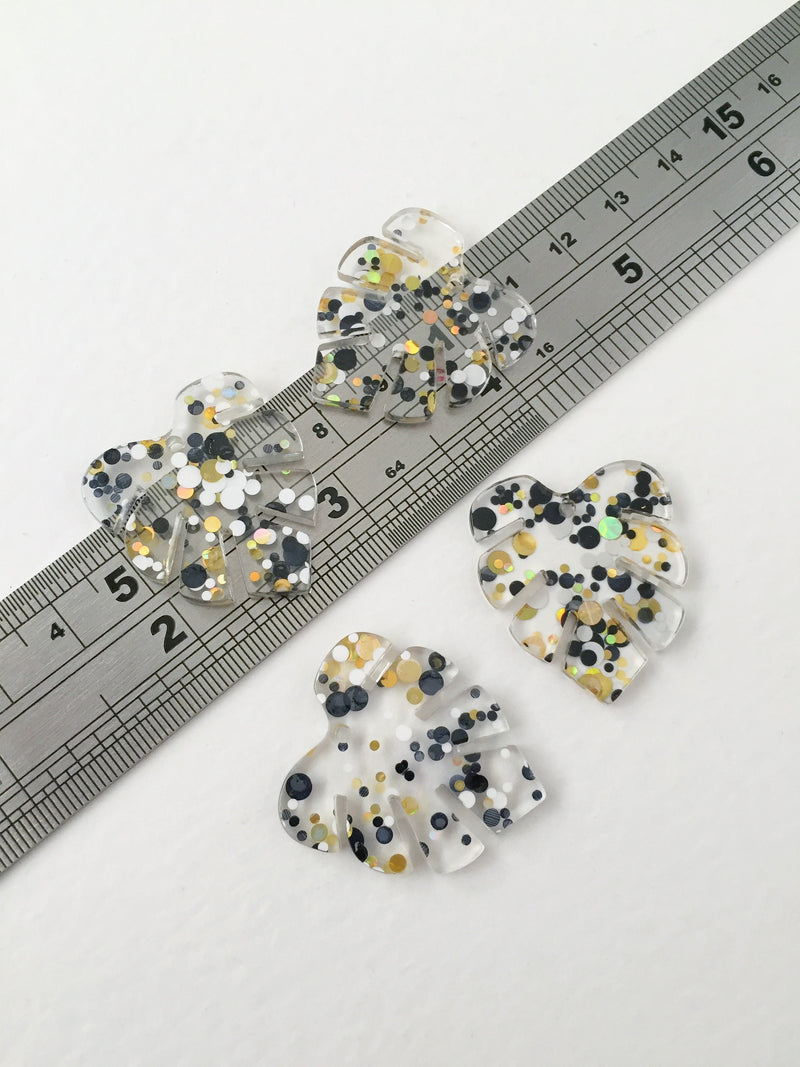 ✨ Transparent resin monstera leaf pendants with gold/black/white glitter