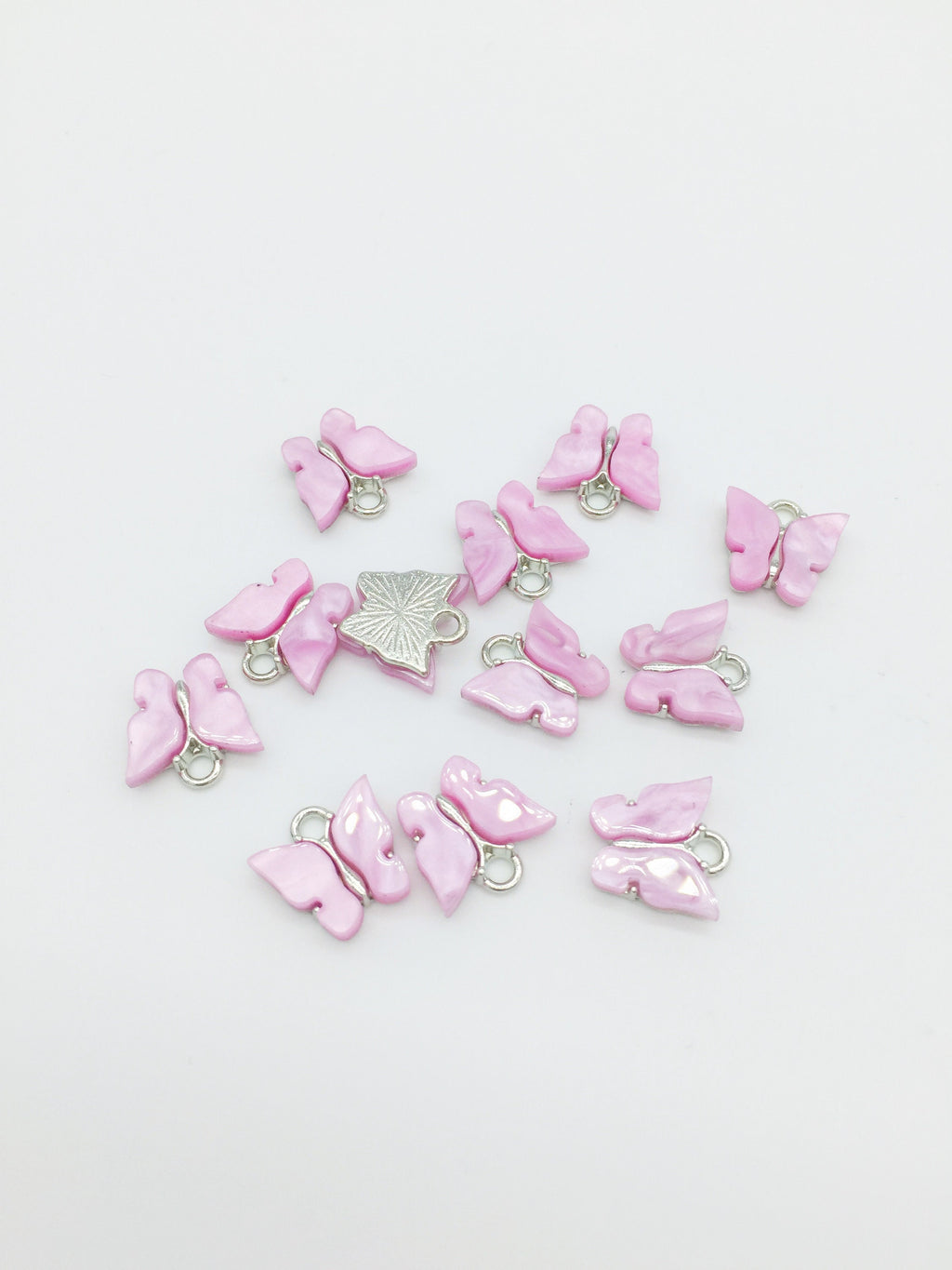 ✨ Resin butterfly charms in rhodium plated frame