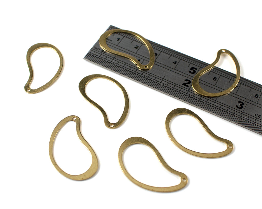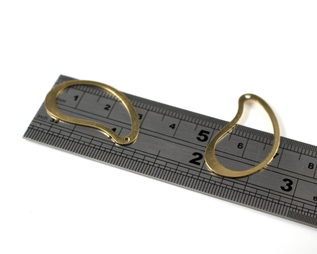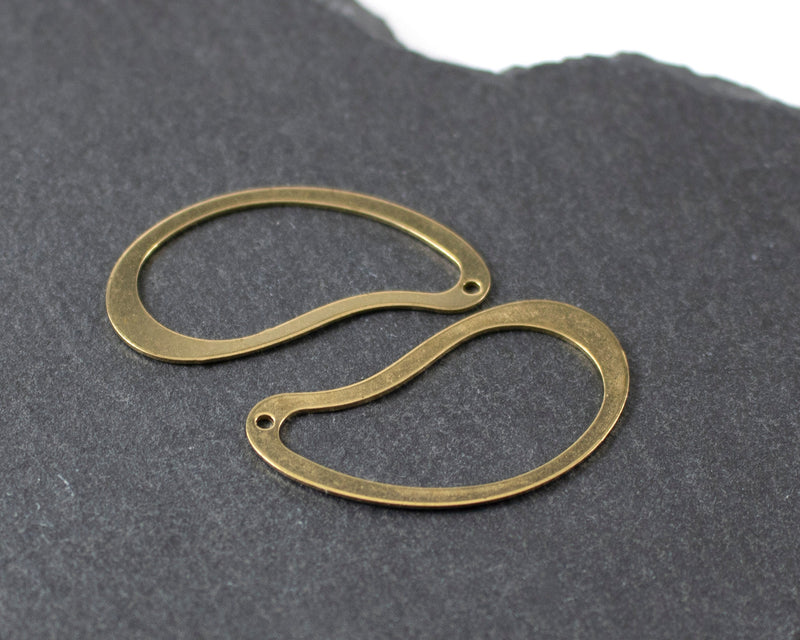 4 x Raw Brass Bean Kidney Charms, 32x18mm (C0108)