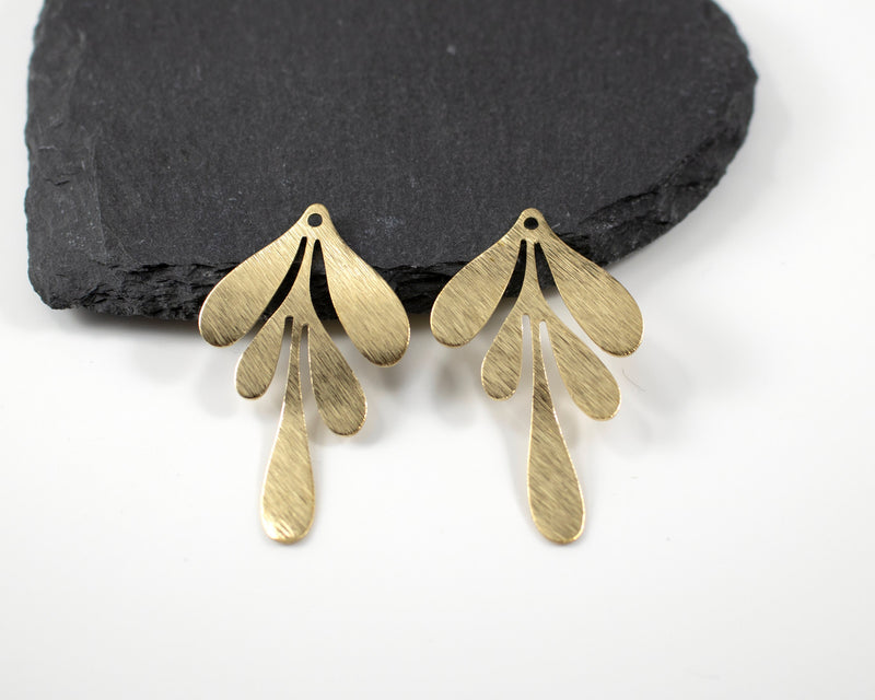 2 x Raw Brass Textured Leaf Pendants, 46x26mm (C0648)