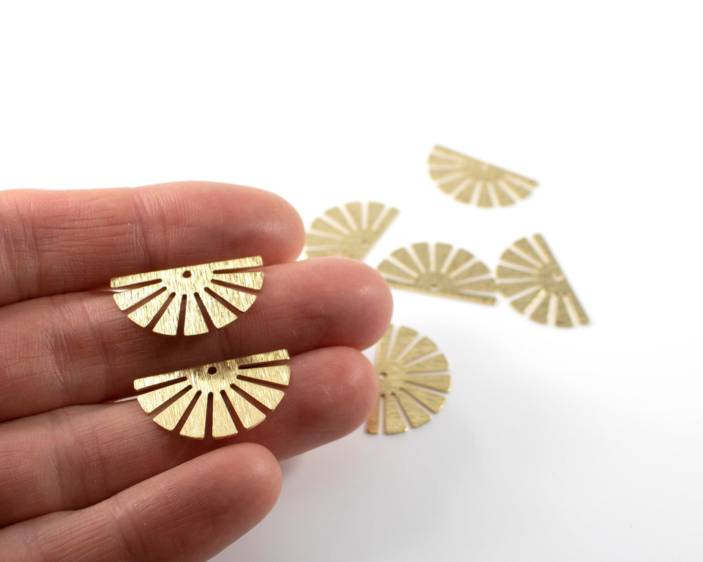 4 x Raw Brass Textured Fan Shape Pendants, 25x14mm (C0072)