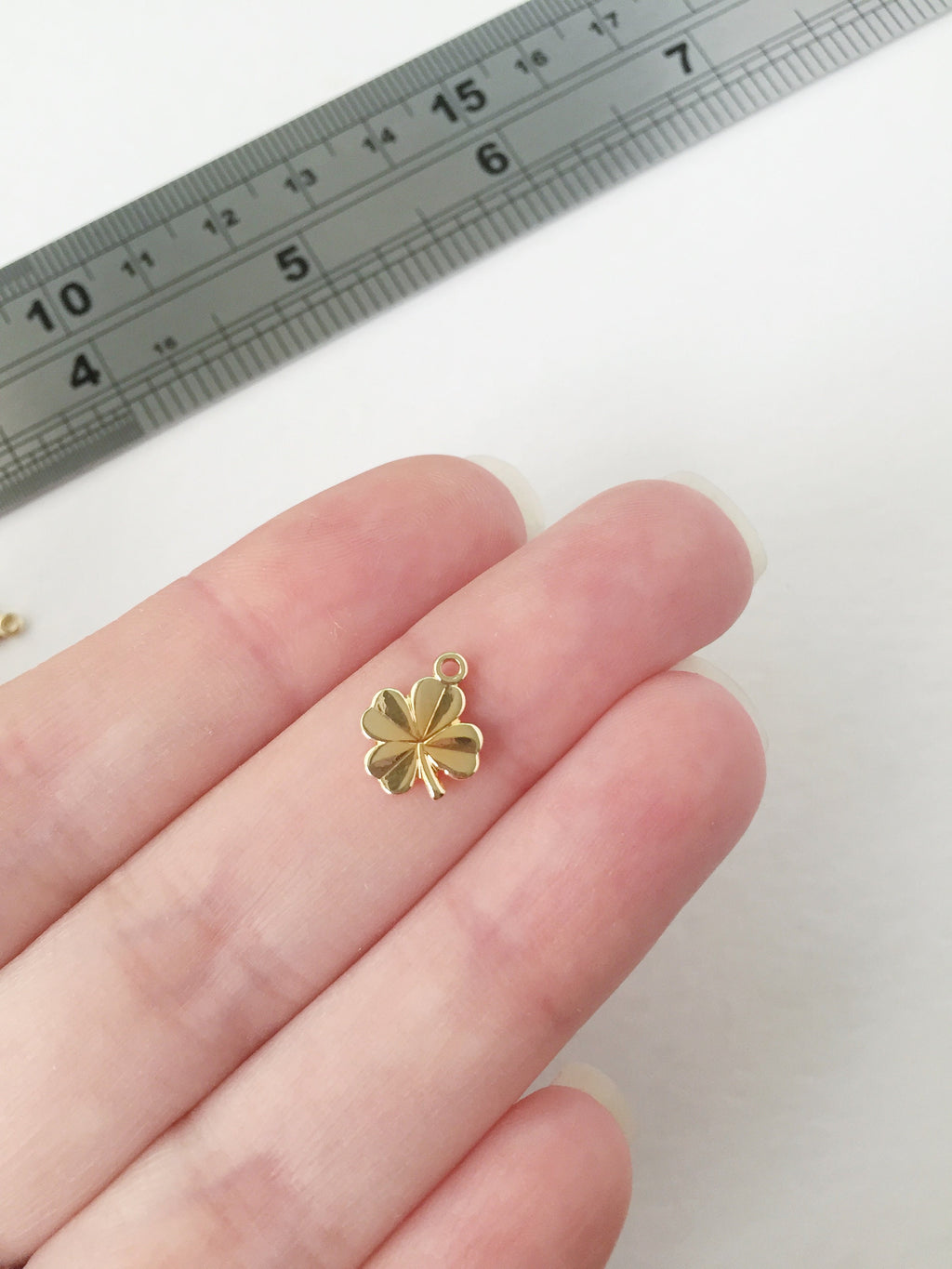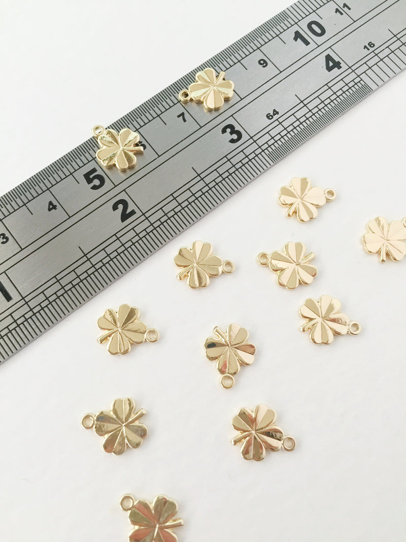 2 x 18K Gold Plated Four Leaf Clover Charms, 10x9mm (0142G)