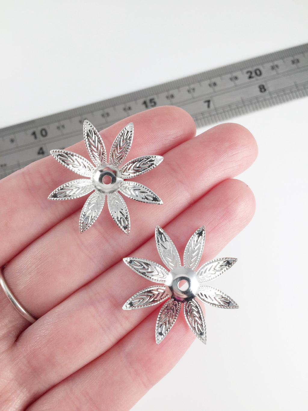 ✨ Beautiful silver flowers with embossed pointed petals