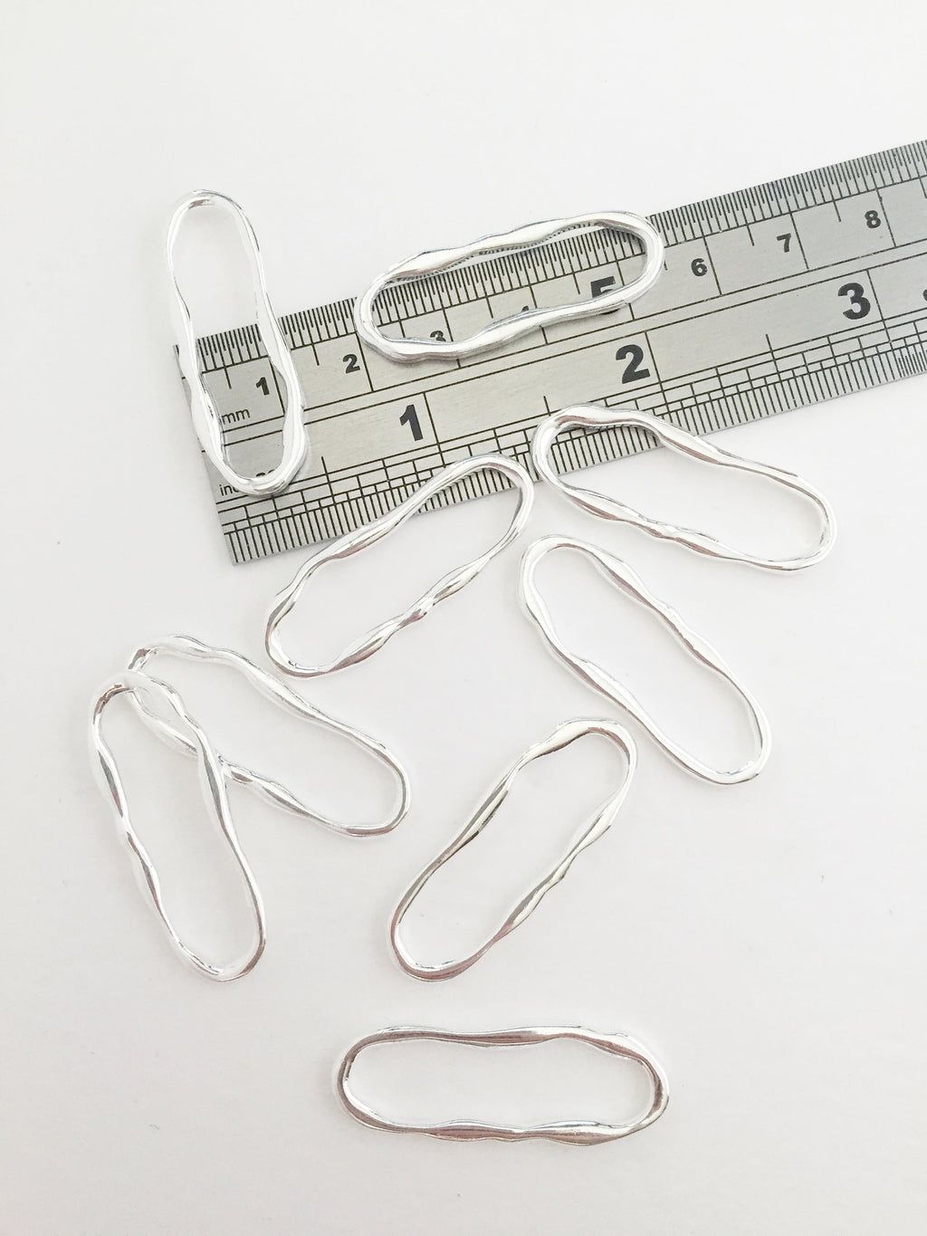 4 x Silver Plated Wavy Oval Connectors, 35x14mm (0610S)