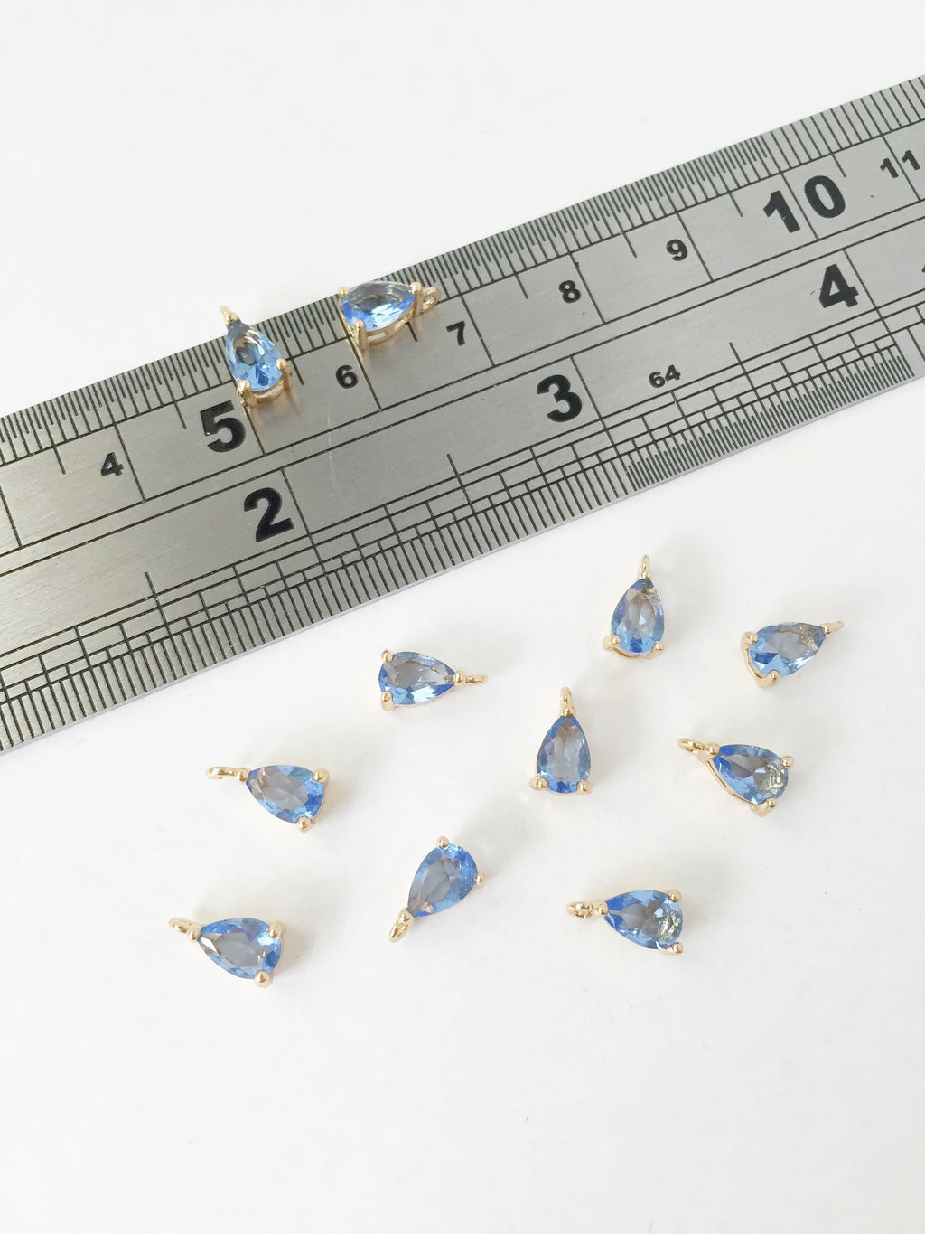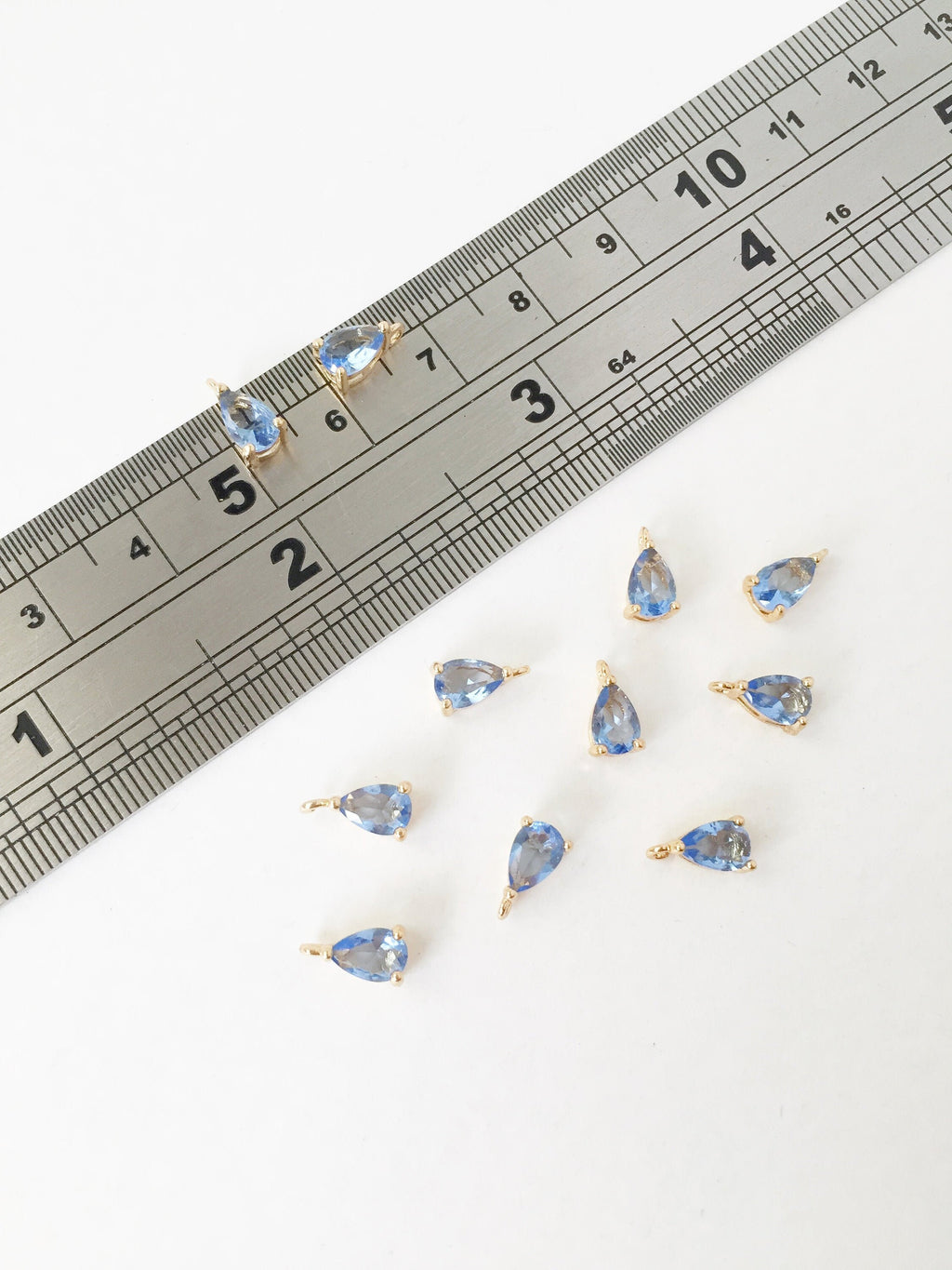 ✨Light blue pear cut cubic zirconia charms, 18k gold plated brass