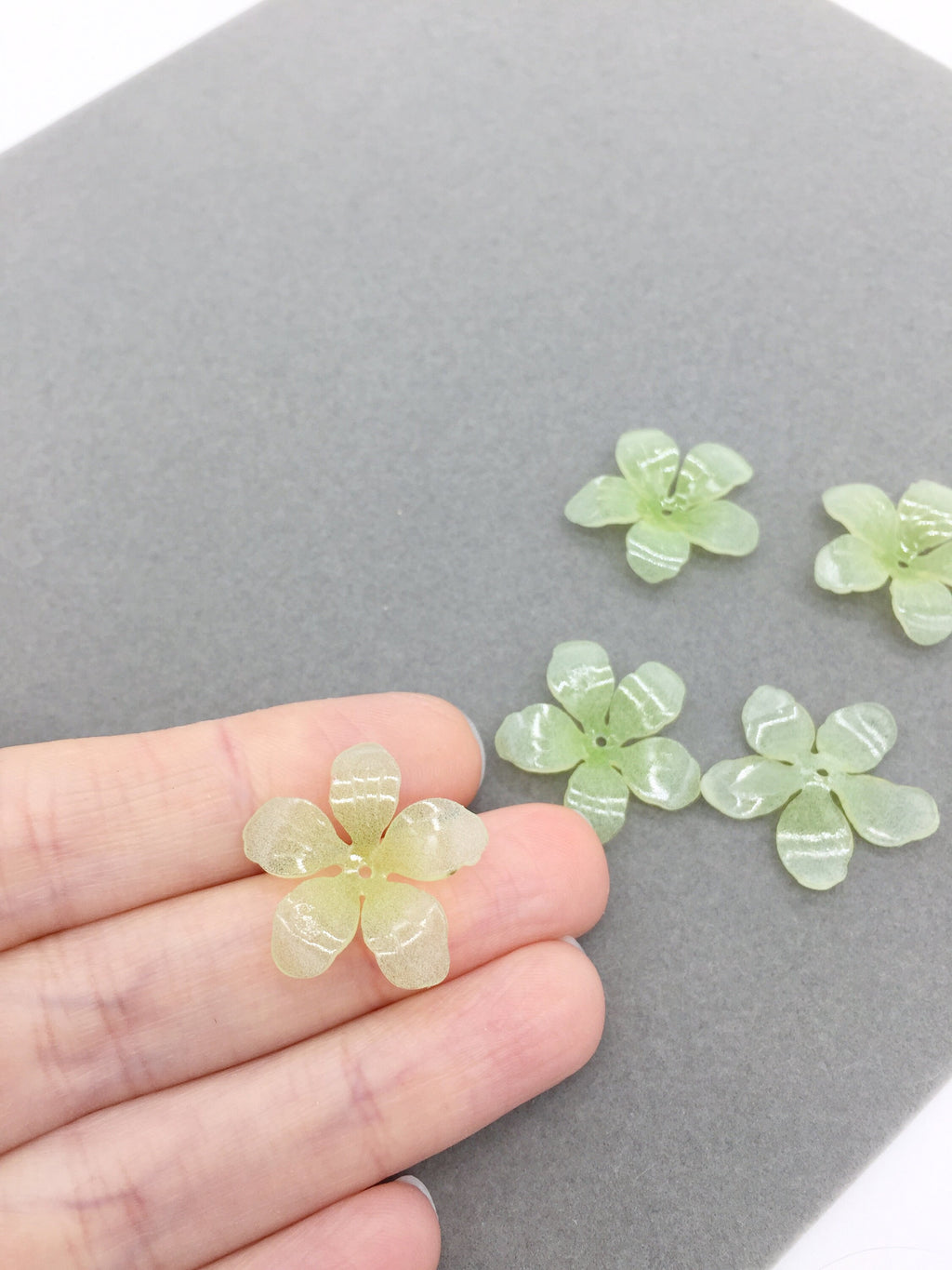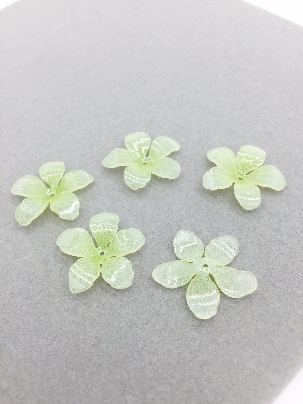 4 x Translucent Acrilic Textured Green Flower Beads, 24mm (3262)