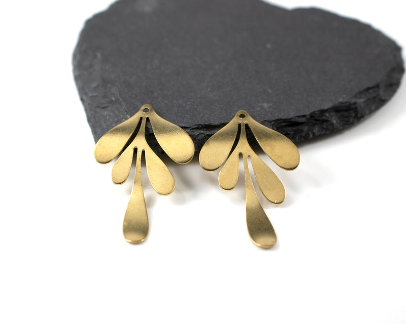 2 x Raw Brass Wavy Leaf Pendants, 46x26mm (C0093)