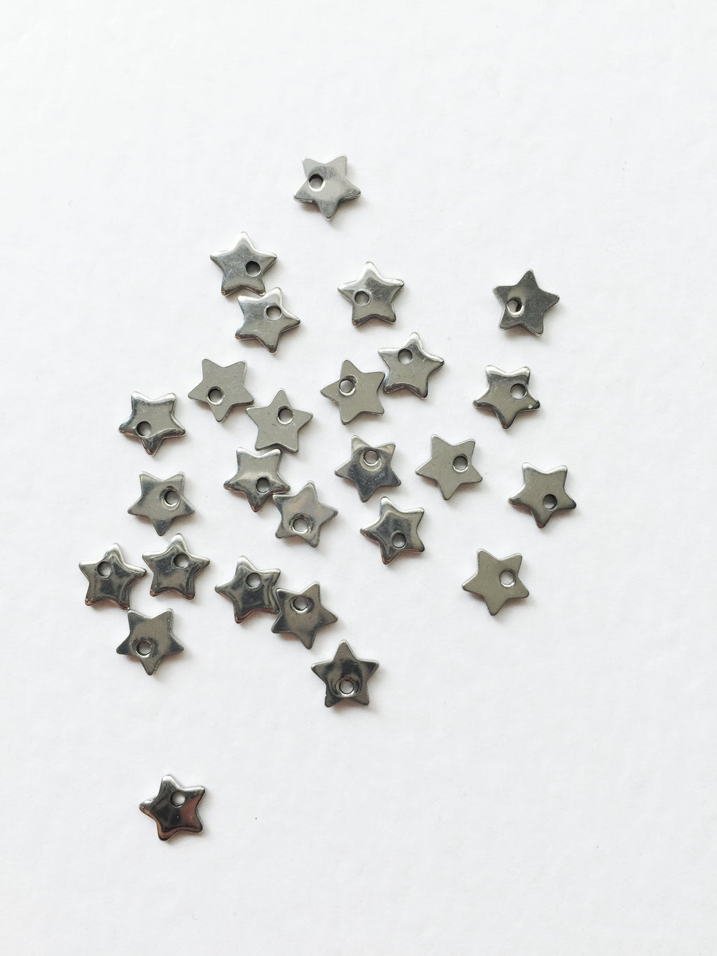 40 x Tiny Stainless Steel Star Charms, 6mm (0089)