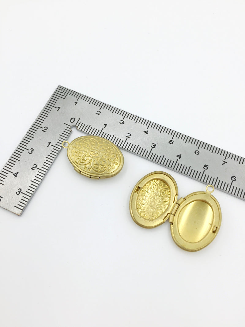 ✨ Raw brass oval shaped locket pendants with embossed floral pattern