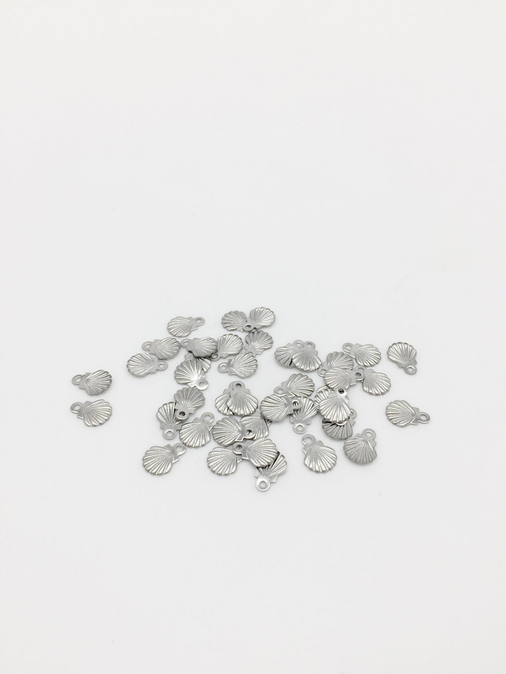 50 x Tiny Stainless Steel Shell Charms, 8x6mm (1034)