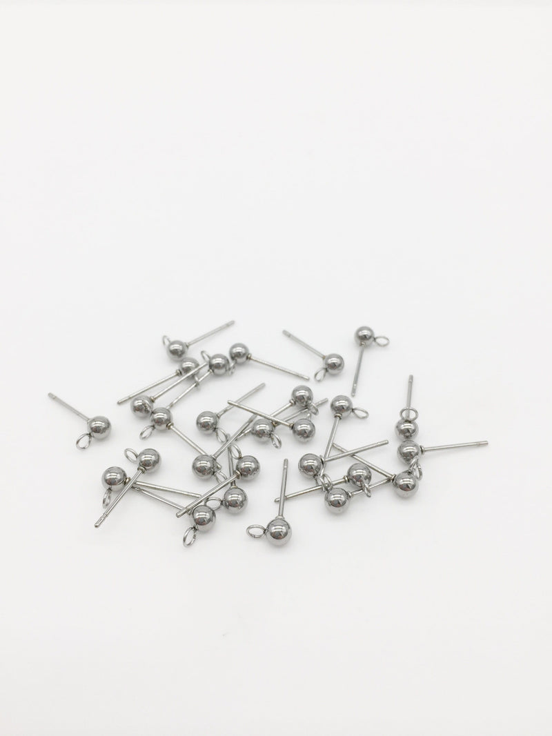 3 pairs x Stainless Steel Ball Earring Studs, 4x11mm (0484)