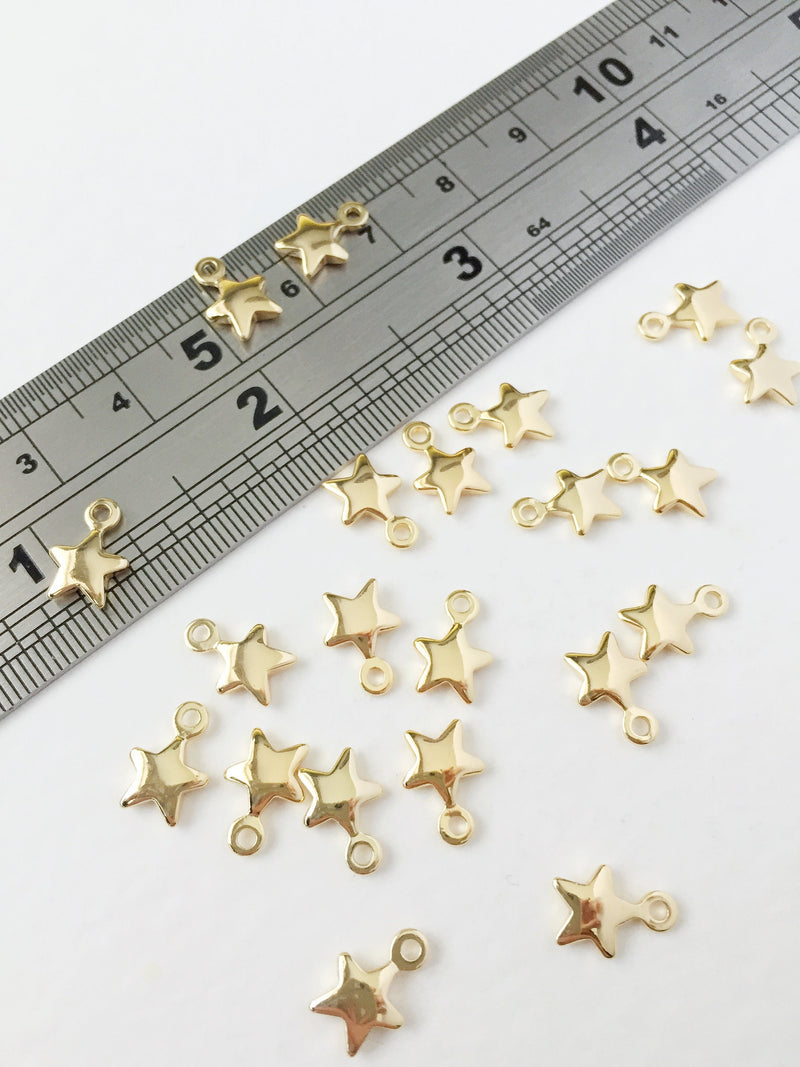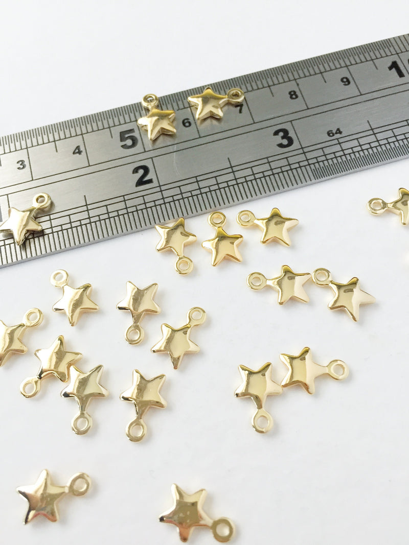 6 x 18K Gold Plated Star Charms, 7x10mm (0154)
