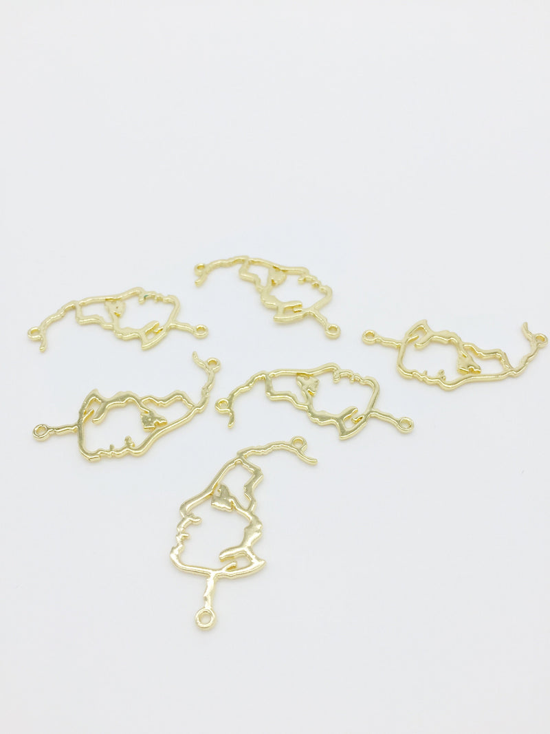 4 x Gold Plated Face Outline Connectors, 35x18mm (1263)