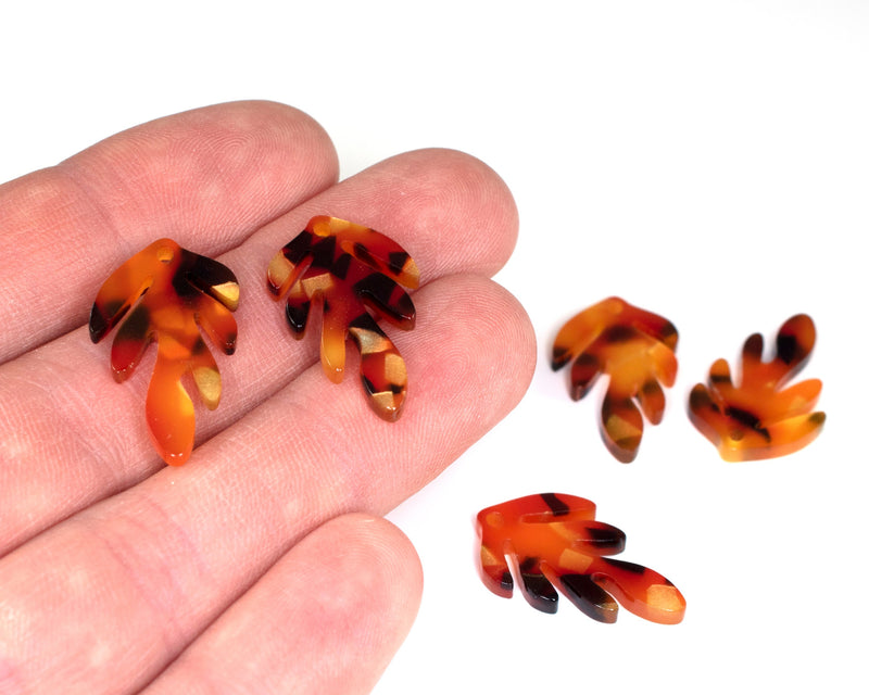 4 x Tortoiseshell Leaf Pendant, 25x16mm Cellulose Acetate Charms (C0573)