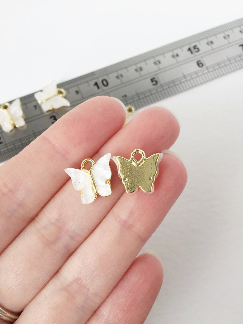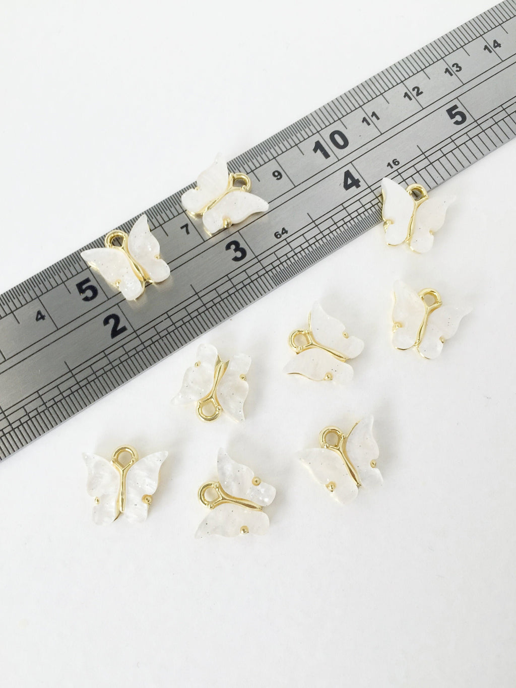 4 x Gold Plated Pearl White Resin Butterfly Charms, 12.5x13mm (1454)