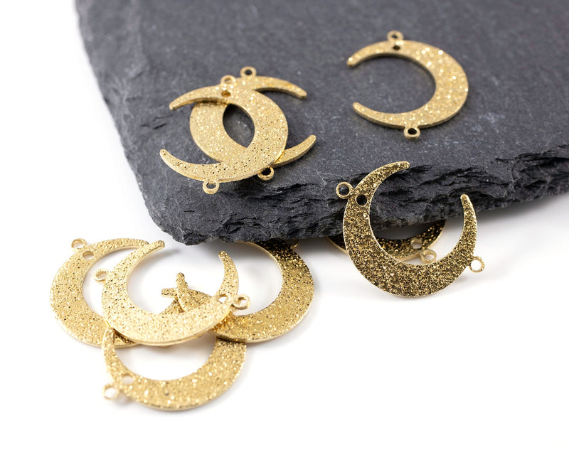 10 x Raw Brass Textured Crescent Moon Connectors, 22x17mm (C0445)