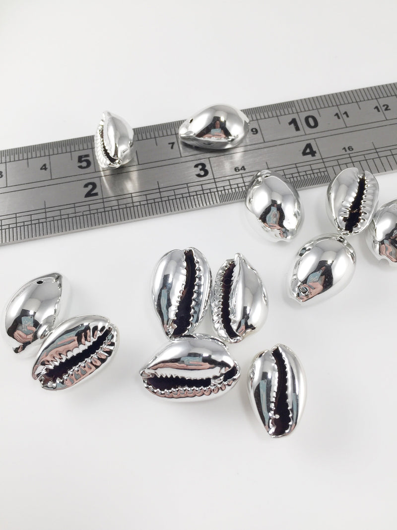 Natural cowrie shell plated in rhodium tone, drilled at the top, hole size is around 0.8-1mm