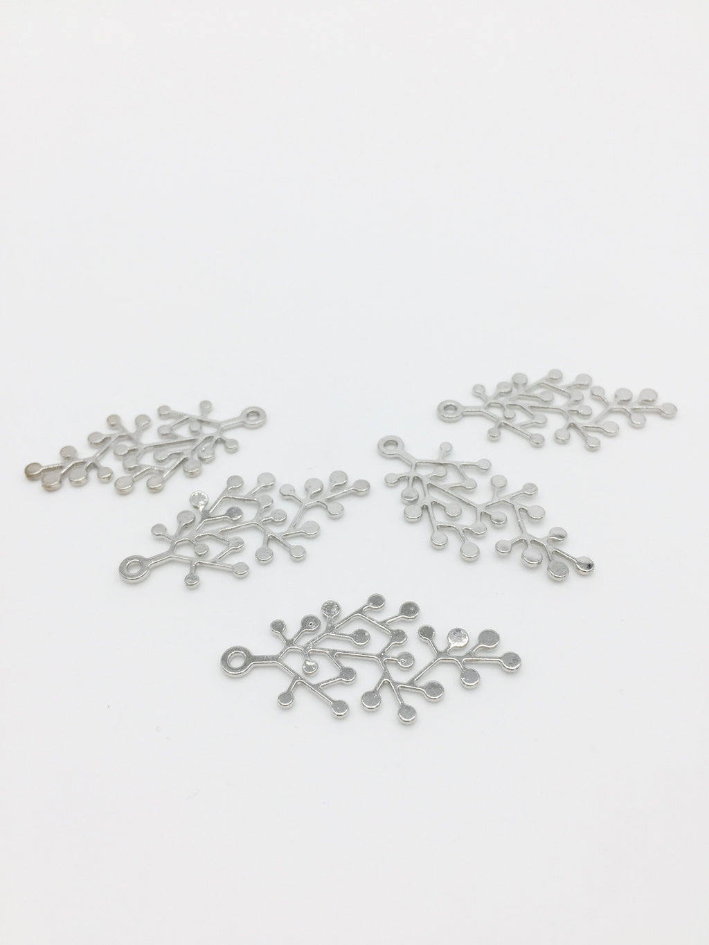 6 x Rhodium Dotted Branch Pendants, 36x18mm (1602)