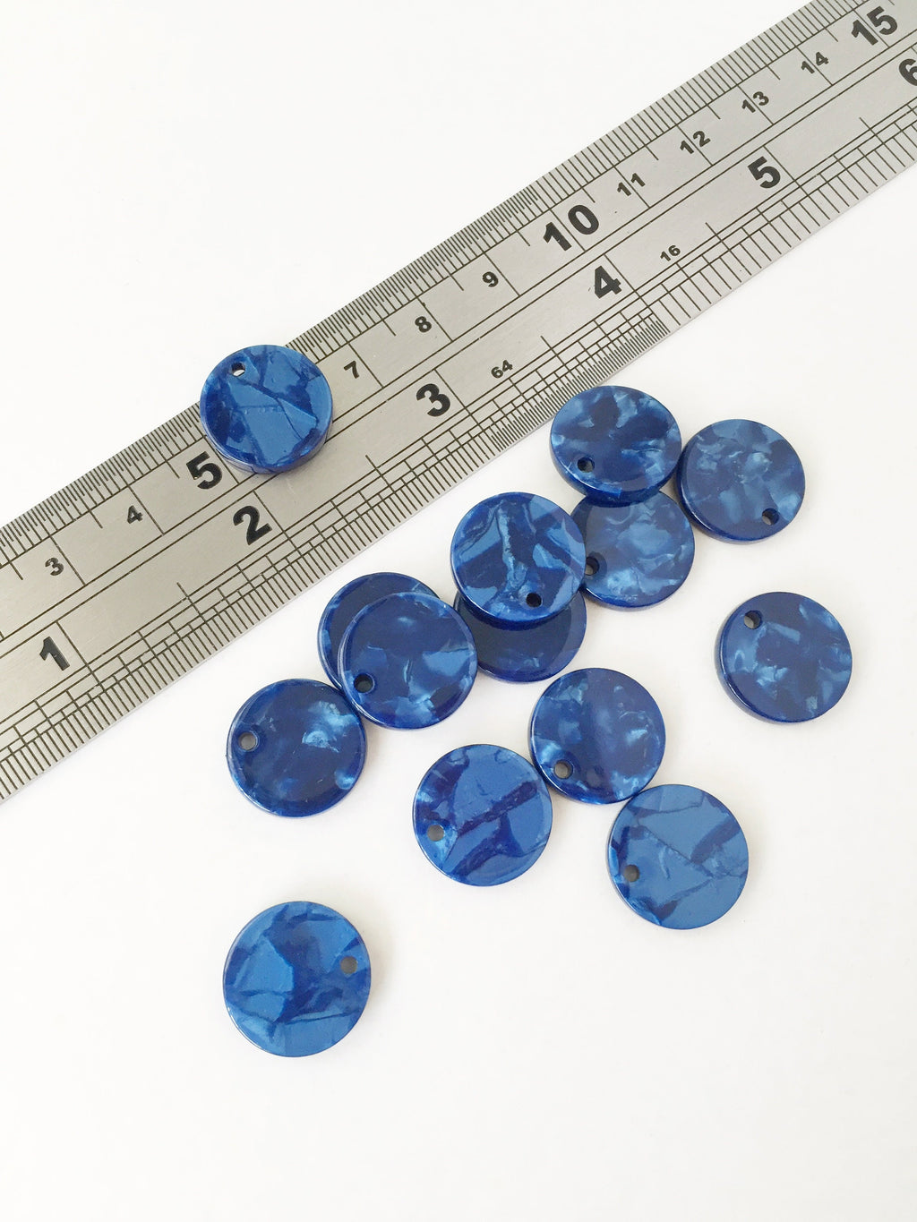 6 x Navy Blue Tortoiseshell Coin Pendants, 15mm (1532)