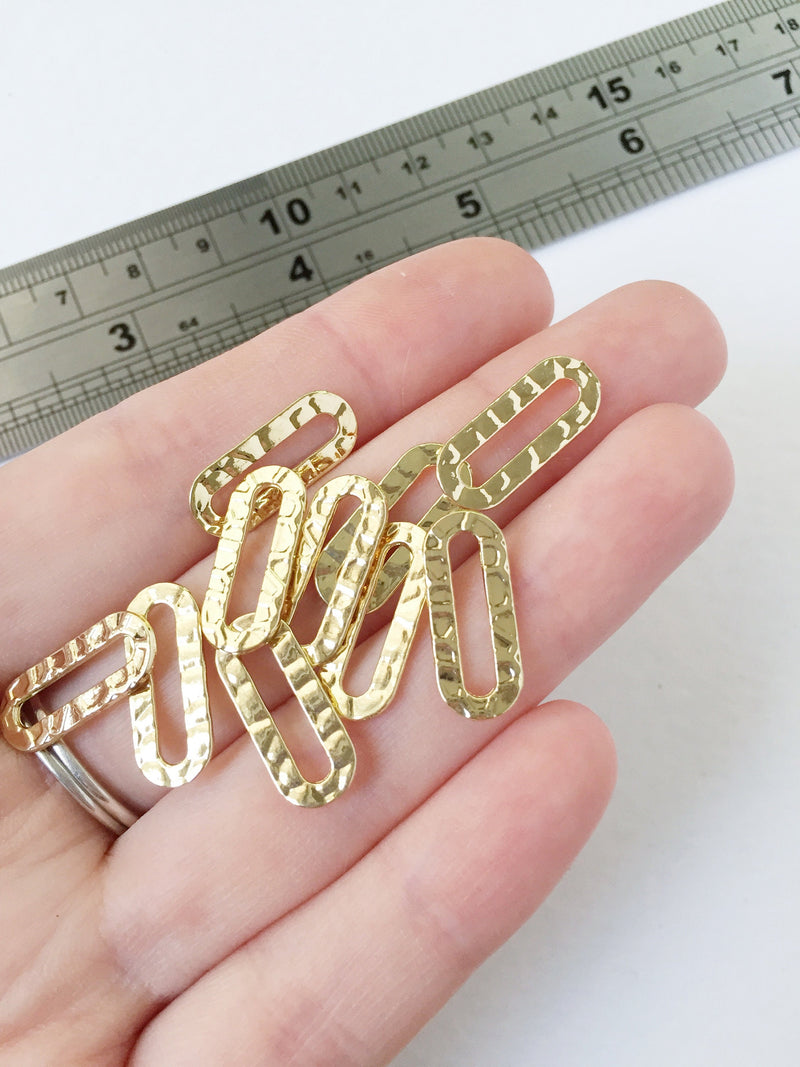 8 x Gold Plated Textured Oval Connectors, 8x19mm Pill Shape Jewellery Links (0496)